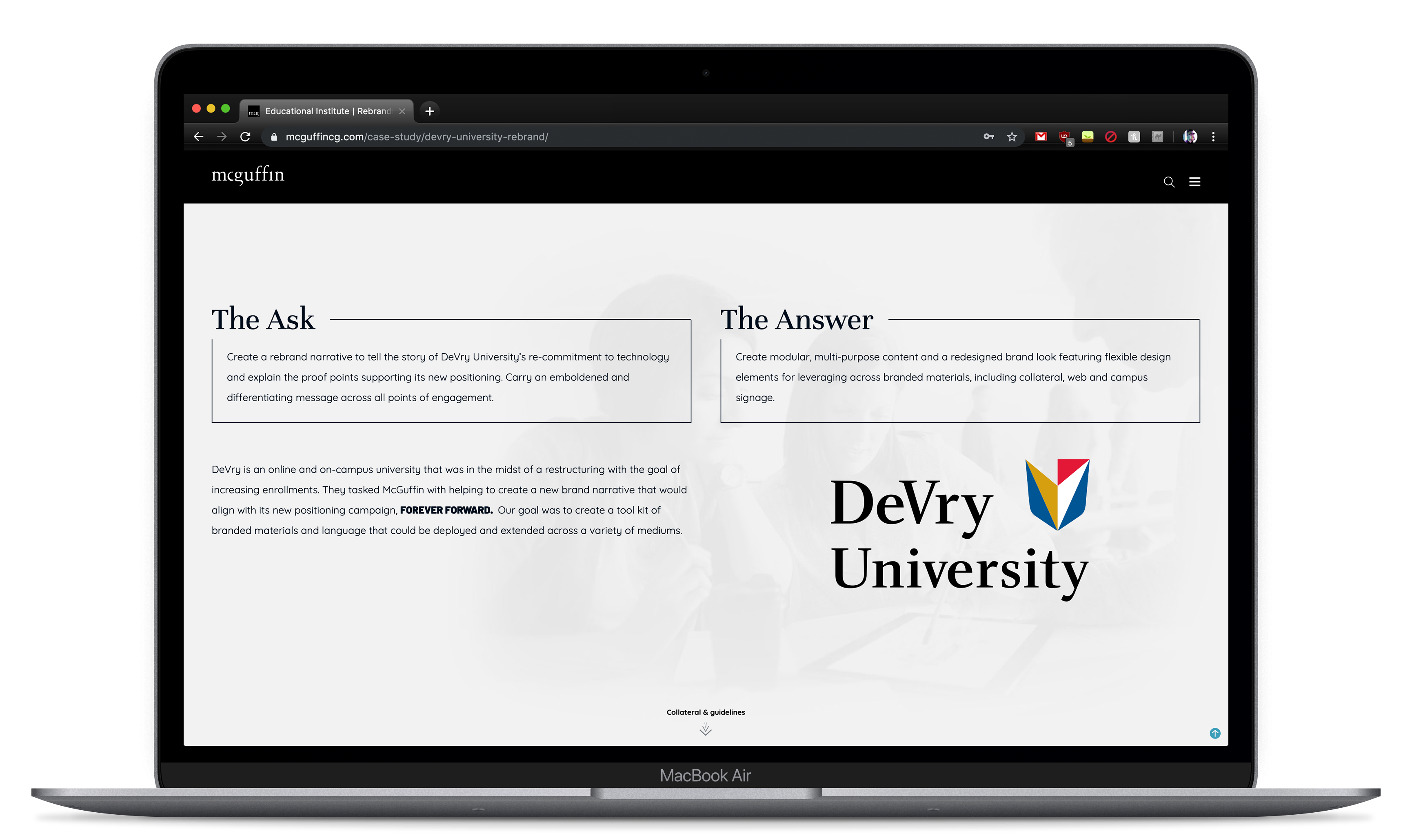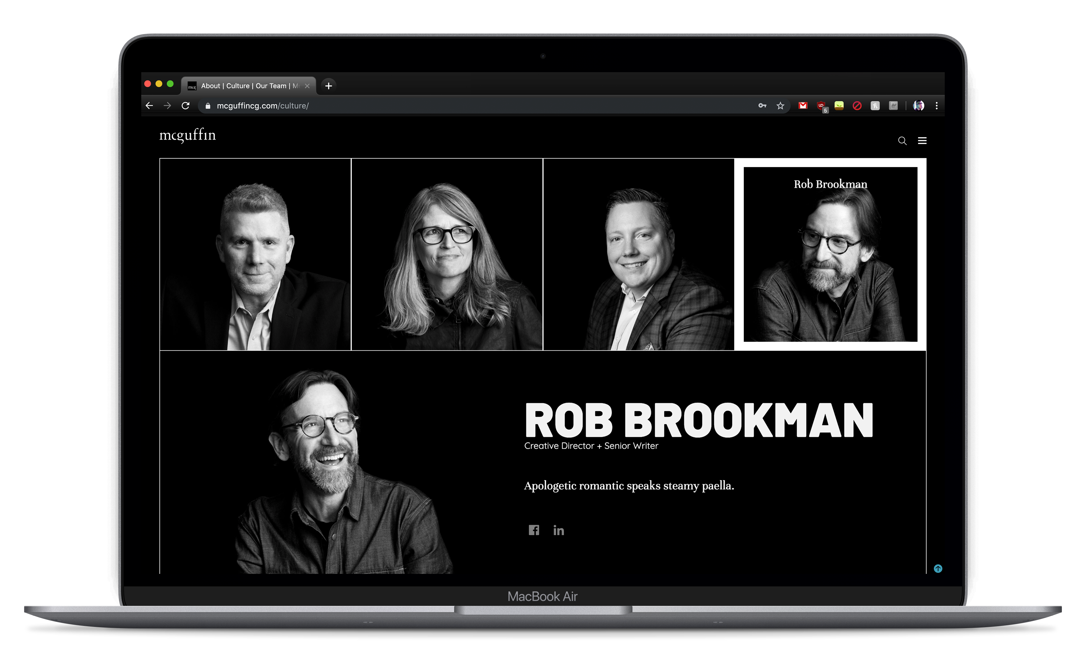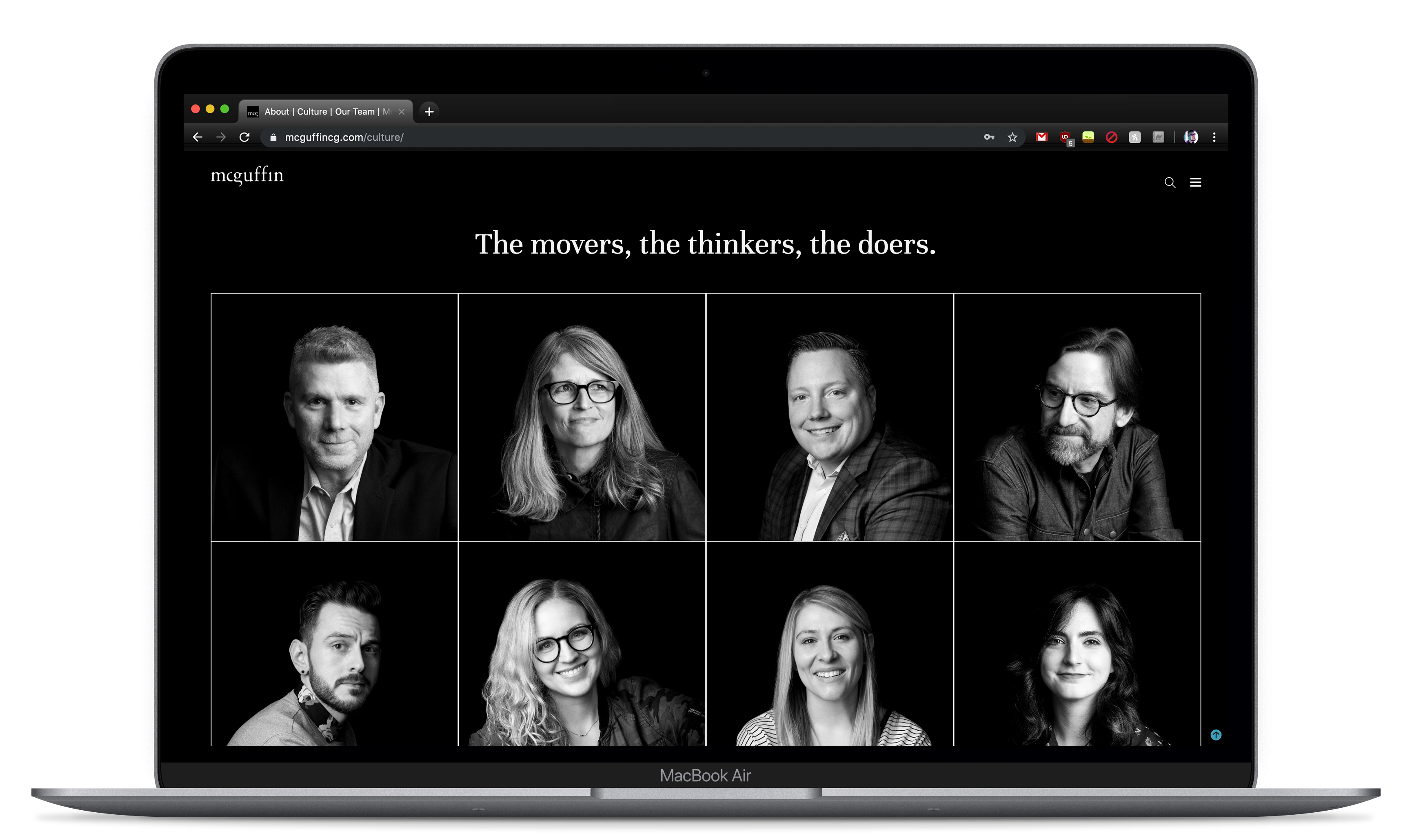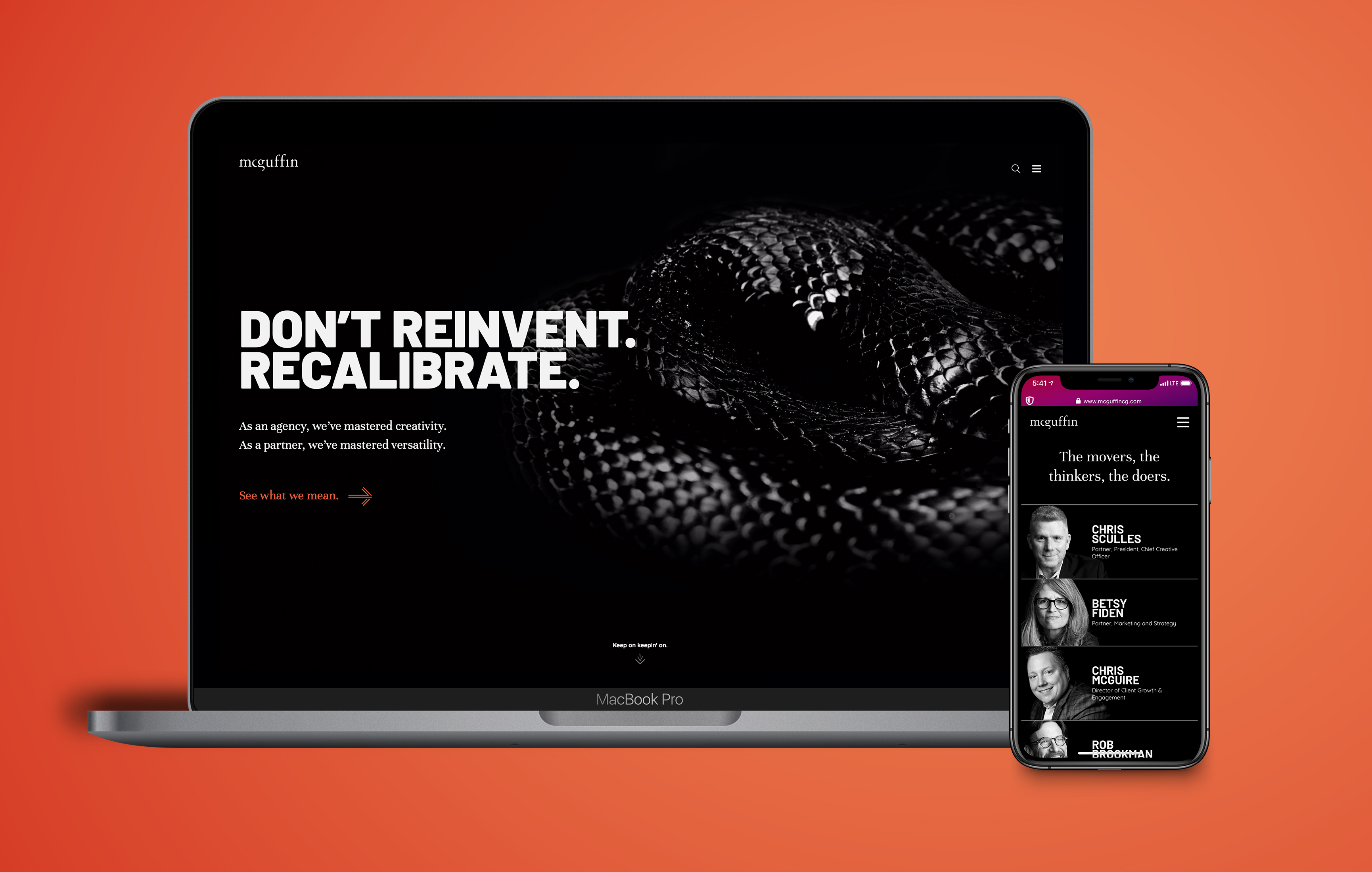 In rebranding the agency, sub-brands received a look that was connected to the greater McGuffin umbrella but were able to stand on their own. This included developing new logos for both the McGuffin Grant (a grant of $25,000 worth of creative services given to a non-profit on an annual basis) and McGuffin Mornings (a quarterly thought leadership series of speakers across different marketing media over a breakfast).