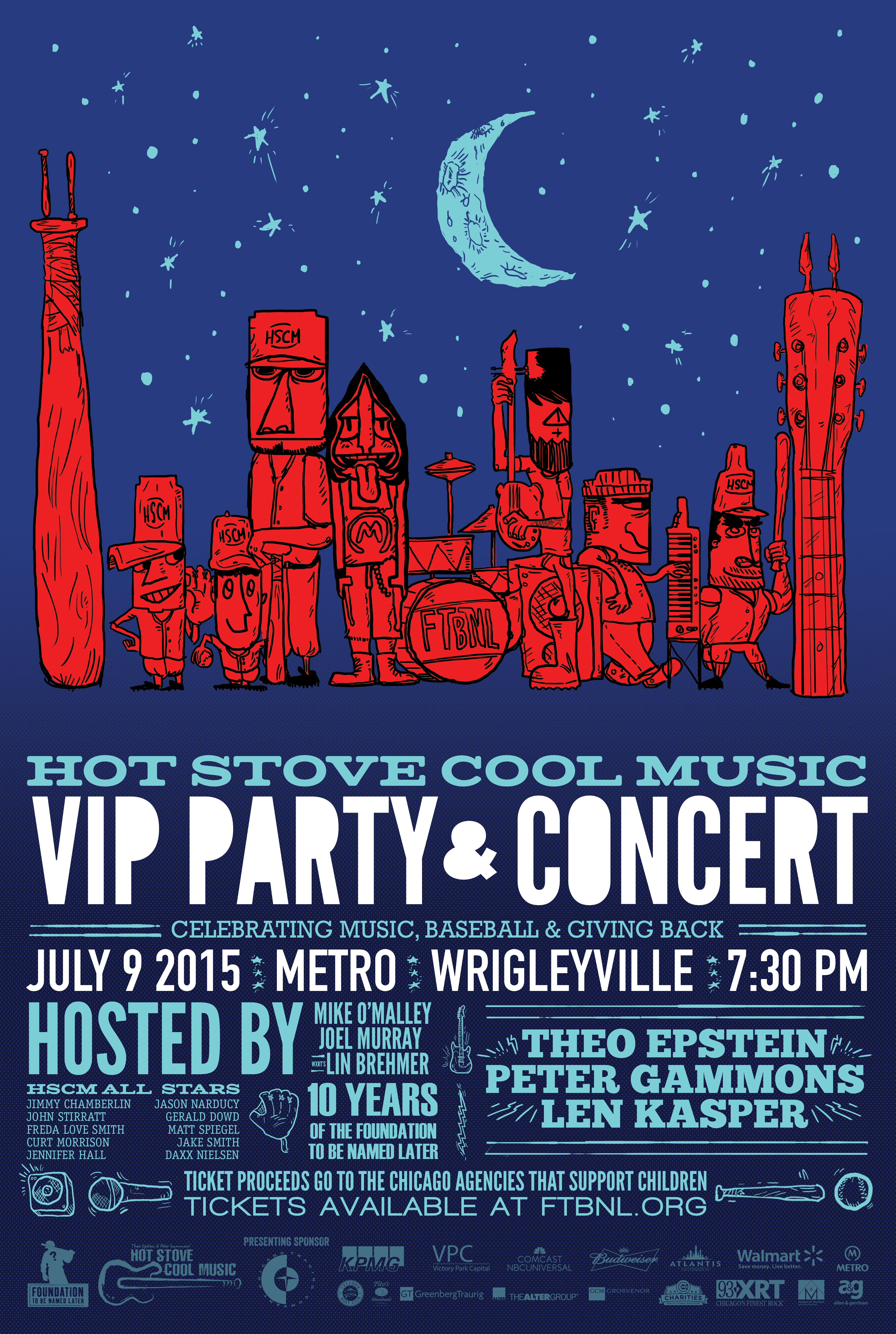 Hot Stove Cool Music is Theo Epstein’s biannual event featuring multiple musical guests, comedians and speakers, designed to raise funds for The Foundation to Be Named Later. Each event has a unique look and feel, but the union of baseball and music was a requirement.